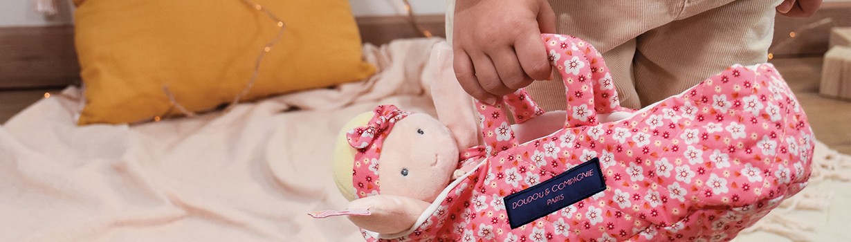 Poupon Bébé avec couffin - Marylou - rose - 20 cm